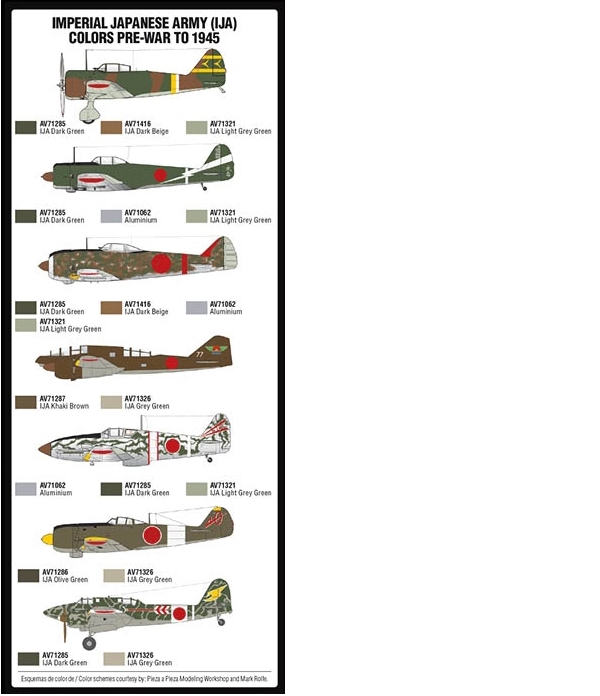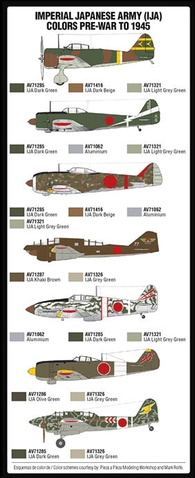 Set with Model Air colors developed to paint aircraft of the aviation division of the Japanese Imperial Army (IJA) deployed in the war with China during the years previous to the attack on Pearl Harbor (December 1941) and the subsequent entry into the WWII conflict until August 1945.