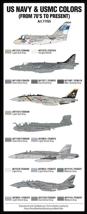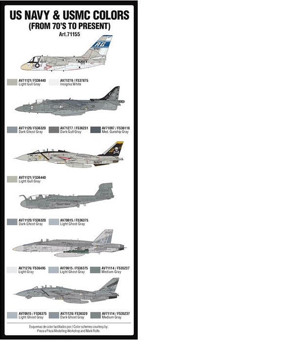 Set of Model Air colors developed for painting the color schemes of most of the US NAVY and USMC aircraft in service since the seventies to present.